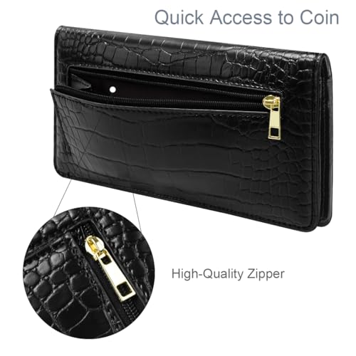 HOT ! Wallet Women Bifold Faux Crocodile Leather Minimalist Slim Thin Long Wallets RFID Blocking Credit Cards Holder Purse with Back Zipper Coin Pocket for Women and Men,Black