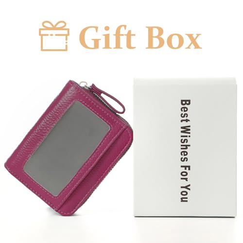 Genuine Wallet Women RFID Blocking Card Holder, Small Leather Womens Wallet with Zipper ID Window Coin Pocket 6