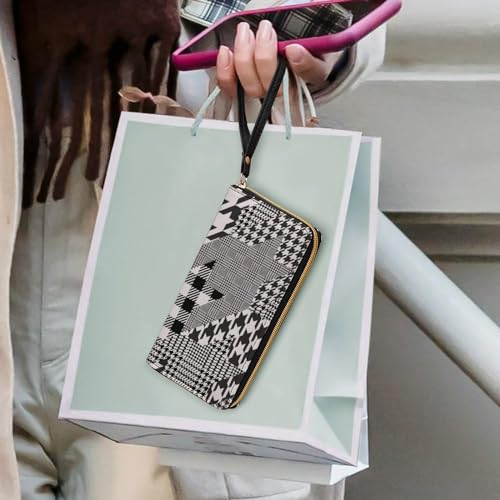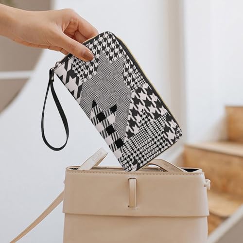 Niapessel Women's Wallets, Houndstooth Black White Print Large Zip Around Leather Travel Long Purse with Wrist Strap Card Cases & Money Organizers 1