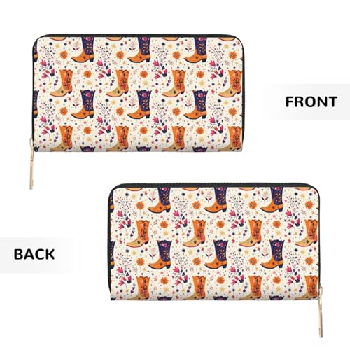 • Quality Material: Crafted from ultra-fine microfiber PU leather, this Floral Cowboy Boots Print wallet women will surely impress with its soft inner lining. Our ladies wallet combines premium faux leather and quality metal zipper for a comfy, lightweight, and sturdy experience. Discover the elegance of leather wallets for women with our superior card holder wallet