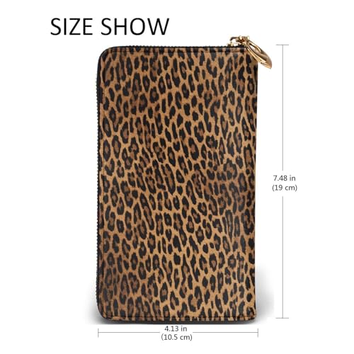 Leather Wallet for Women & girls, Fashion Long billfold Wallets, Durable Ladies purse for Daily, Leopard print ID card package, Slim Thin RFID Blocking Credit Card Wallets with Zipper Coin Pocket 5