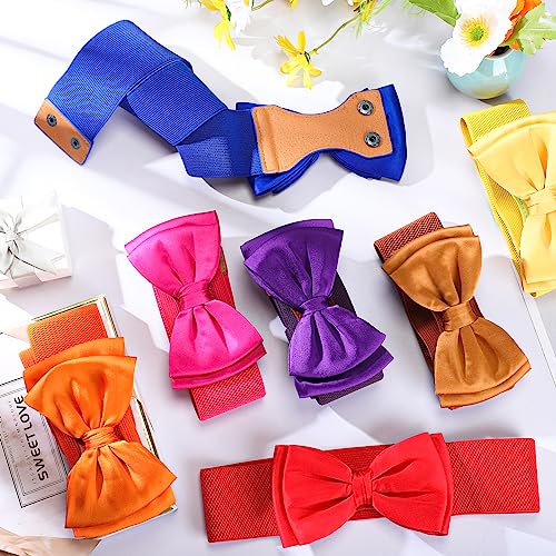 Jeyiour 8 Pcs Wide Elastic Stretchy Bowknot Waist Belt Casual Vintage Bow Knot Corset Waistband Cinch Belts for Women Dress, 8 Colors 4