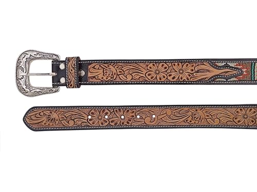 Western Tooled Leather Beaded Belt For Men and Women 30IS114 1