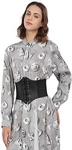 • PU leather corset belts.Wide stretchy fabric elastic waist band corset belts .Belt width is 4.7inch. includes buckle/strap