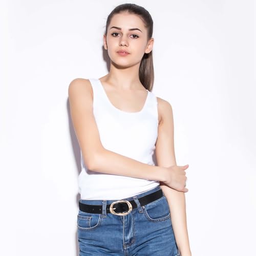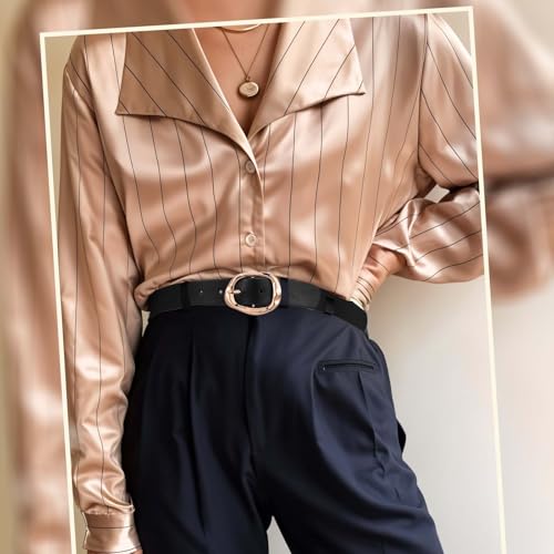 • Elegant Gold Buckle Design:Enhance any outfit with this black belt women featuring a striking gold metal buckle, adding an elegant touch to your look. The timeless design of this black belt women makes it perfect for both casual and formal wear