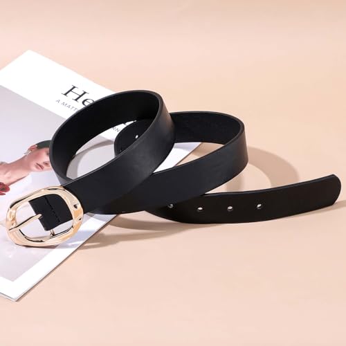 Black Leather Belt Women Black Belt Womens with Liquid Shapes Gold Buckle Waist Belts for Jeans Pants Dresses Ladies Belts 3