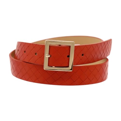 Women Fashion Basket Weave Band Belt Hip High Waist Gold Metal Buckle S M Orange z003 2