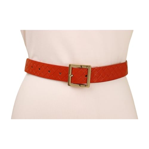 Women Fashion Basket Weave Band Belt Hip High Waist Gold Metal Buckle S M Orange z003 5