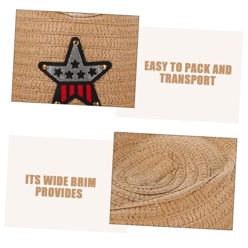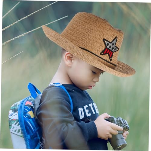 FRCOLOR Children's Straw Cowboy Hat for Kids Summer Beach Hat UV Protection for Outdoor Activities and Parties for Boys and Girls Khaki 5