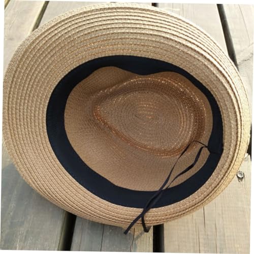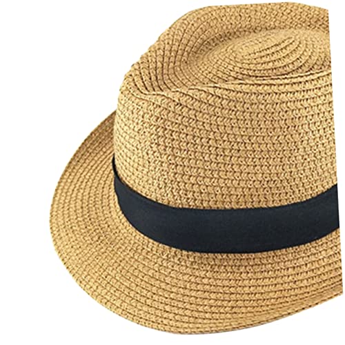 Beaupretty Unisex Boys and Girls Straw Sun Hat for Spring Beach Short Brim Sun Cap Stylish Khaki Straw Hat for Boys and Girls 7