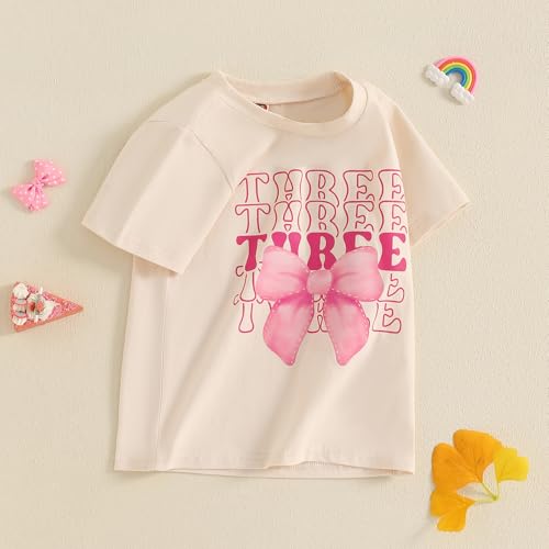 Toddler Baby Girl 1st 2nd 3rd 4th Birthday Outfit Bow One Two Three Four Year Old Short Sleeve T-Shirt Summer Clothes 5