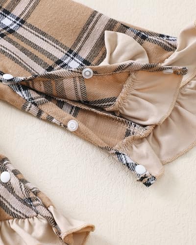 Renotemy Newborn Baby Girl Clothes Fall Winter Outfit Ribbed Romper Plaid Overalls Jumpsuit Infant Girl Outfits 0-18 Months 6