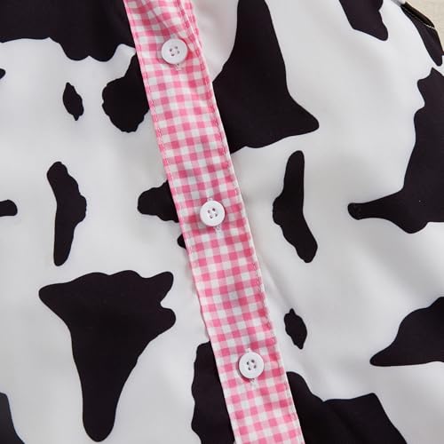 Western Baby Girl Denim Outfits Cow Print Shirt Toddler Ruffle Sleeve Button Down Tops Bowknot Wide Leg Jean Shorts 5
