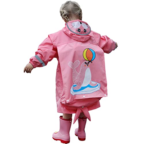 Toddler Rain Wear Children Boys Girls Raincoat Kids Poncho Waterproof Hoodie Cute Cartoon Rain Jacket 6-10years L Size 4