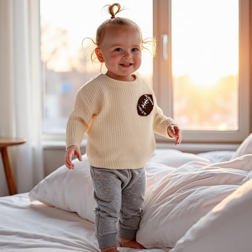 Toddler Baby Boy Girl Clothes Knit Sweater Football Embroidery Sweatshirt Long Sleeve Shirt Warm Fall Winter Outfits 4