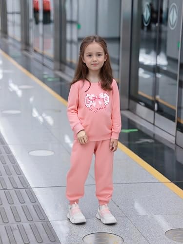 Toddler Girls 2-Piece Outfit, Crew Neck Heart Print Top And Casual Pant Set (Not sequins) 5