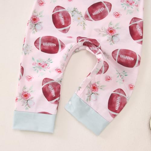 • 【Design】This pink football onesie for girls features cute football and floral prints, paired with a matching headband for extra charm! The ruffled long-sleeve one-piece romper keeps baby cozy, while snap-button closures make diaper changes effortless. A must-have gameday baby outfit for girls during football season baby clothes! Your baby will get lots of compliments with this football bodysuit.