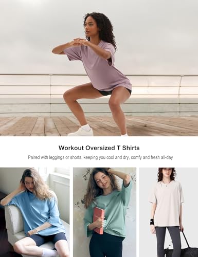 1/5 Pack Workout Oversized T Shirts for Women, Short Sleeve Plus Size Baggy Dry Fit Athletic Gym Shirts Tops Tees 4