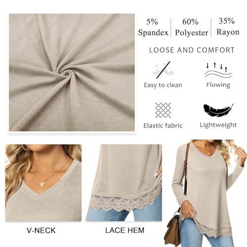 • Features: The ladies long sleeve v-neck shirt has loose bottom regular hem with beautiful lace, could cover up the belly. It is a stretchy blouse to wear with leggings, jeans, coat or jacket, a messenger bag or handbag is also great choices. They can be dressed up or down