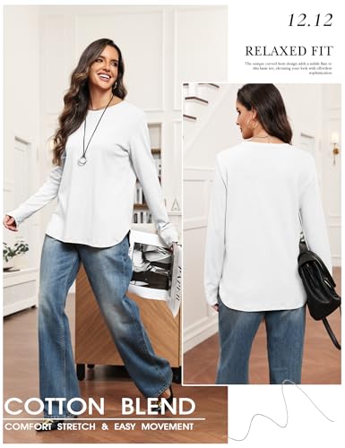 HOT ! Womens Long Sleeve Stretchy Cotton Blend T-Shirts Tee Crew Neck Oversized Tunic Tops 2025 Trendy Casual