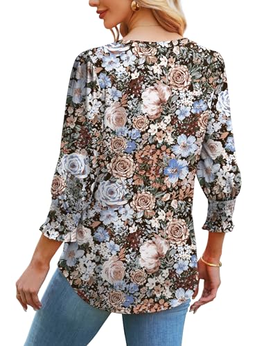 SAMPEEL 3/4 Length Sleeve Womens Tops Dressy Casual Blouses V Neck T Shirts with Smocked Cuffs 1