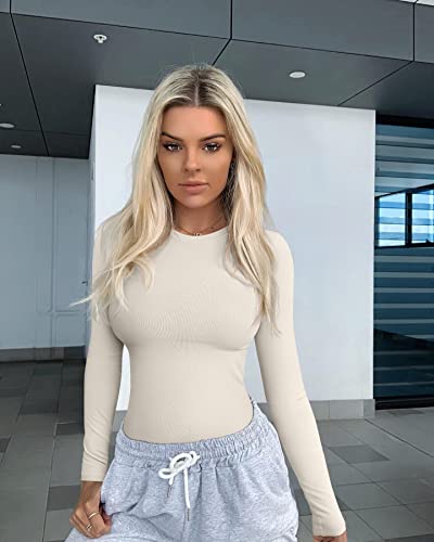 OQQ Womens 3 Piece Long Sleeve Tops Crew Neck Stretch Fitted Underscrubs Layer Tee Shirts 2025 Casual Outfits 4