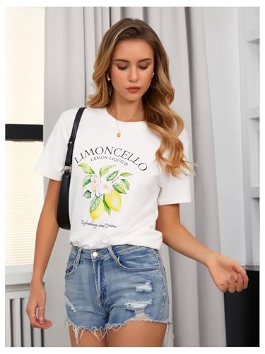 HOT ! SweatyRocks Women's Lemon Shirts Letter Fruit Printed Graphic Tees Short Sleeve Casual T-Shirt