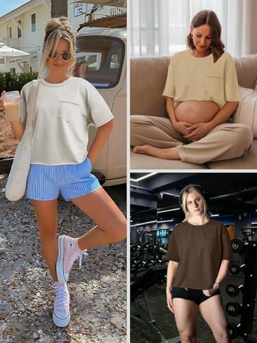 ATHMILE Womens Oversized T-Shirts Short Sleeve Workout Crop Tops Casual Drop Shoulder Boxy Roll Hem Basic Loose Tees 5