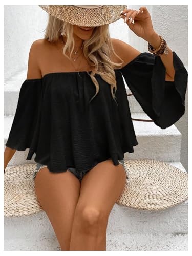 • Off shoulder short sleeve ruffle blouse,loose and flowy,even suit for curvy women or pregnant woman,breathable and cool in hot summer
