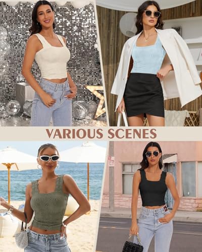 HOT ! Women's Square Neck Wide Strap Crop Tank Tops Slim Fit Sleeveless Going Out Top Flower Lettuce Trim Cami Tops