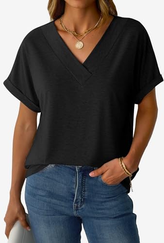 • FEATURES: Featuring unique v neck design is eye-catching and make you look more beautiful and elegant. Short sleeve shirt, casual t shirts, basic solid color tees, summer tops.This v neck tops allows you to stand out and showcase your a feeling of appearing younger and slimmer.