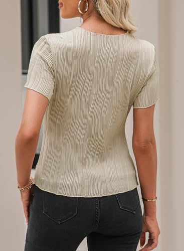 EVALESS Womens Short Sleeve Textured Tops Summer Casual Crewneck Solid Slim Fitted Basic T Shirts Tee Blouses 4