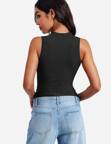 YEOREO Women Basic Mock Neck Workout Crop Top Sleeveless Double Lined Tank Tee Slim Fitted Ruched Going Out Camisole 3