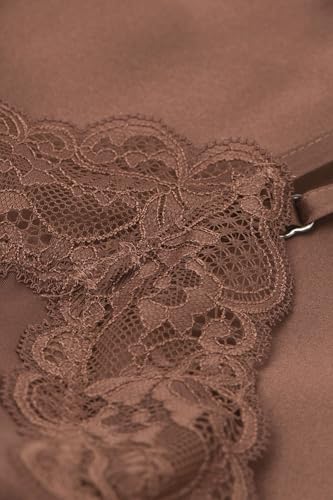• V-neck silk top with adjustable spaghetti straps embellished with lace details in the neckline and at the hem