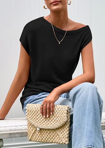 More information about PRETTYGARDEN Womens Off The Shoulder Tops 2025 Summer Casual Short Sleeve Tunic T Shirts Lightweight Knit Sweaters