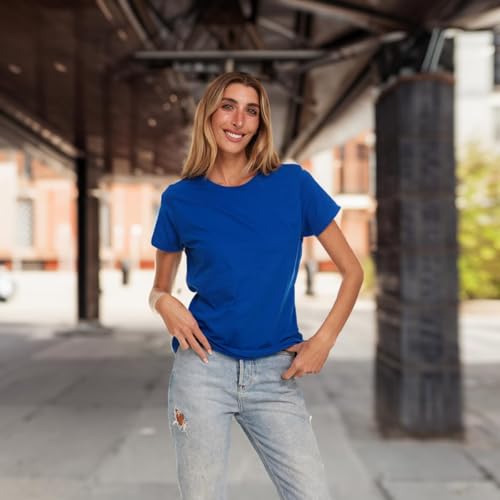BILLIONHATS Womens T-Shirts in Bulk, Cotton Crew Neck Scoop Short Sleeve Tees Assorted Colors Bulk 5