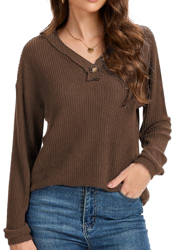 More information about Long Sleeve Shirts for Women V-Neck Button Down Lightweight Tops Blouses Sweaters Fashion Clothing