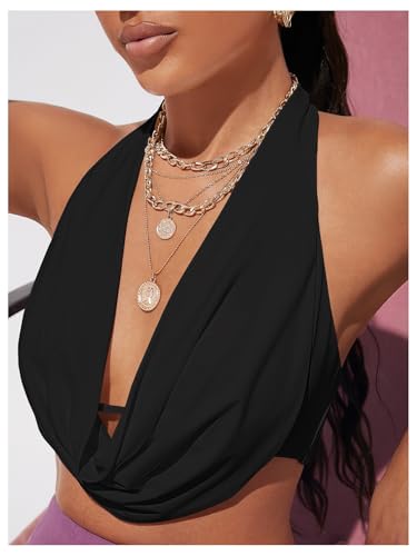 HOT ! SweatyRocks Women's Draped Halter Top Cut Out Sleeveless Y2k Cropped Tank Top Clubwear
