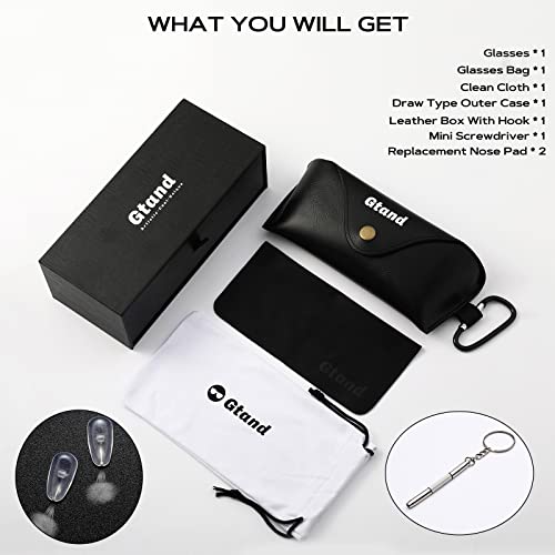 • WHAT YOU WILL GET - 1.Glasses*1 - 2.Drawer type outer case*1 - 3.Leather box with portable hook*1 - 4.Black clean cloth*1 - 5.Glasses Bag*1 - 6.Mini screwdriver*1 - 7.Replacement Nose Pad*2 . These exquisite gift ideas package will be wonderful gifts for your family and friends!