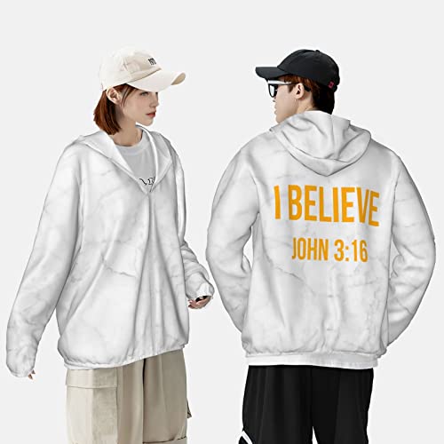 • I Believe John 316 Christian Sun Shirts For Men: Sun Protection lightweight hoodie jacket can block most harmful ultraviolet radiation and protected your sensitive skin against all the elements.The breathable material keep you cool and comfortable in hot days.