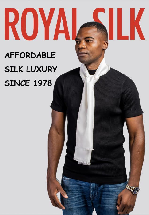 • Superb Style Accessory For Men and Women by Royal Silk. Size 8" x 60". Washable silk. Silk scarf for women. Silk is gracefully cool in warm weather.