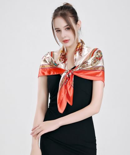 QBSM 35'' Satin Large Square Head Scarf Silk Feeling Neck Scarves Hair Sleeping Wrap Lightweight Headscarf for Women 5