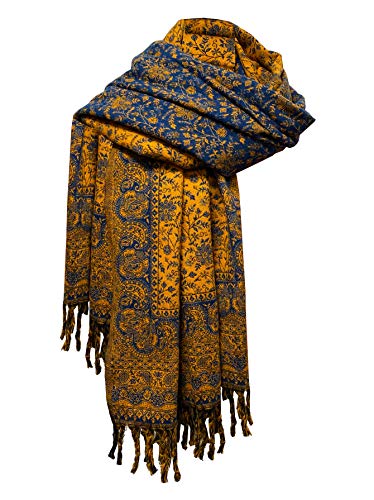 LUXURY YAK WOOL SHAWL FLORAL PAISLEY DARK BLUE COLOR SCARF FASHION SCARF OVERSIZE YOGA Blanket stole unisex Travel Wrap Meditation Soft gift for her 1