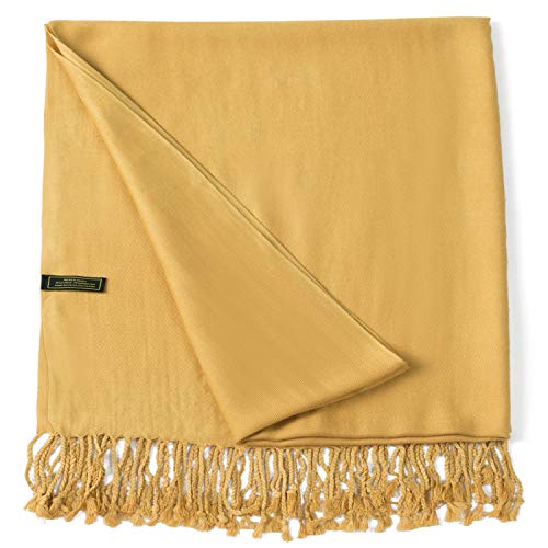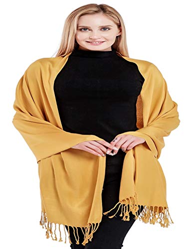 CJ Apparel Gold Brown Solid Color Tassels Design Nepalese Shawl Scarf Wrap Stole Throw Head Wrap Pashmina Hand Made in Nepal New 1