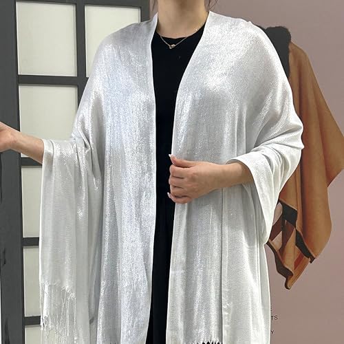 Soft Silky Shawl Wraps for Women – White Sunscreen Scarf with Long Tassels, Lightweight Evening Party Dress Shawl, Summer Thin Beach Bikini Sun Cloak 7