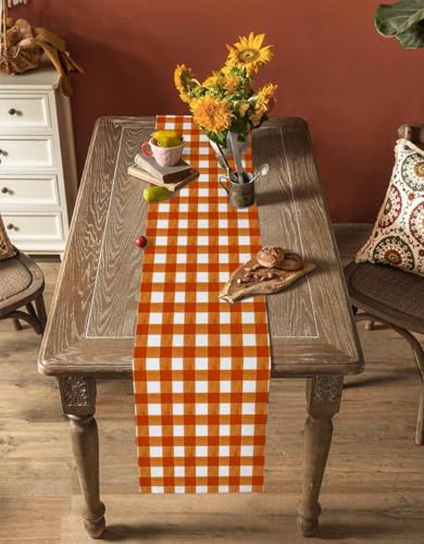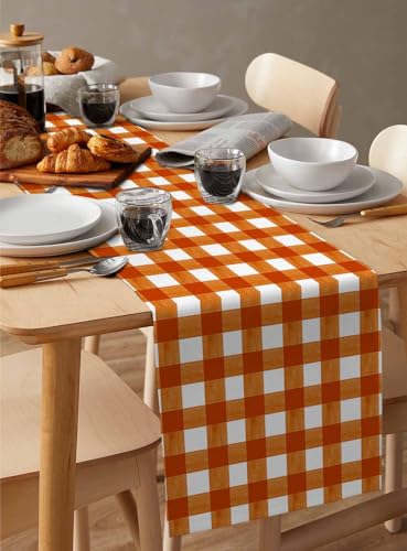 Burnt Orange Checkered Table Runner 108 Inches Long Farmhouse Dress Scarves, Farmhouse Buffalo Plaid Dining Tablerunner for Coffee Table/Kitchen Island/Party Décor, 13" x 108" 7