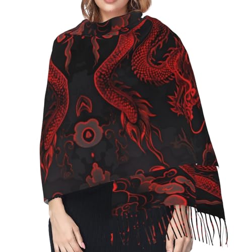 HOT ! Red Dragon On Black Pashmina Shawls Scarf Wraps for Women, Fall Winter Large Blanket Scarf Fashion Scarves