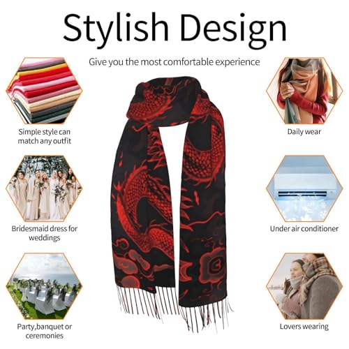 • Thoughtful Present Choice: This Red Dragon On Black oversized scarf, with its unique patterns and colors, makes a perfect present for friends and loved ones. Ideal for birthdays, holidays, or just because, it’s a thoughtful way to show you care. Perfect as a blanket scarf, it's suitable for spring, autumn, and winter