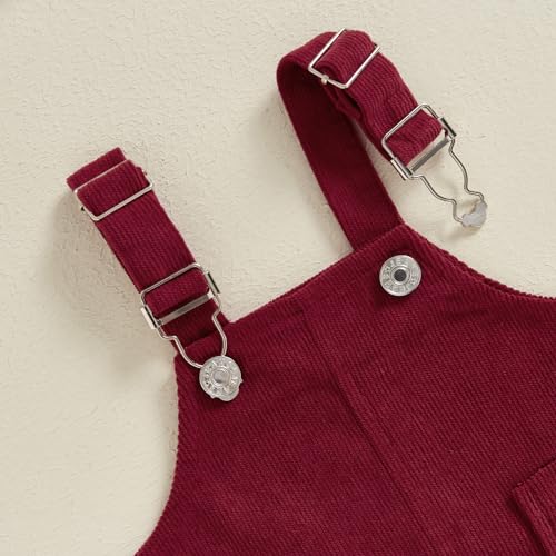 Emmababy Baby Girl Corduroy Suspender Dress Toddler Ruffle Shirt Long Sleeve Button Down Tops Straps Short Overall Dress Set 5