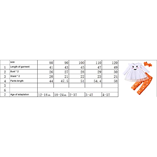 • 🎃 PACKAGE CONTENTS:1 x T-shirt pullover + 1 x Pants+1 x hairband. 12-18 months /18-24 months /2-3 years /3-4 years /4-5 years, suitable for little girls. Please check our size chart before ordering.